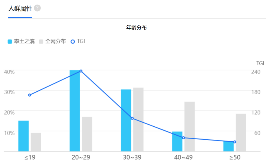 因此别看SLG这个品类总被调侃是做给中年人、有钱老板玩的,但从百度指数等数据能清晰看到,《率土之滨》的用户画像中20多岁的年轻人占比非常高。